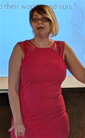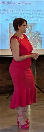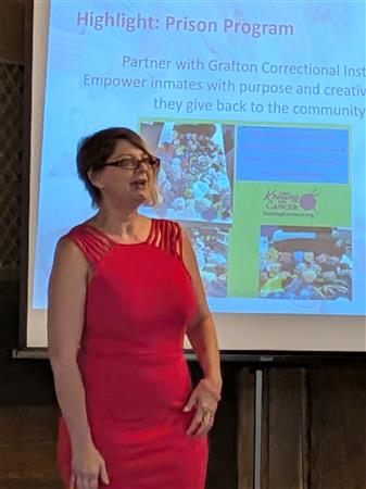 Jennifer Bystricky, founder of Knitting for Cancer spoke about her non-profit for the benefit of cancer warriors.