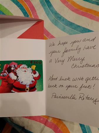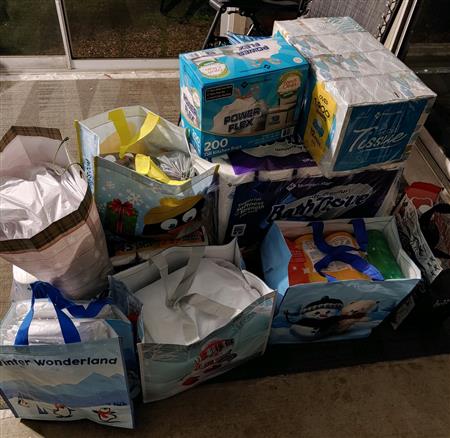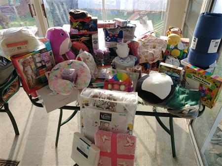 Pictures of the gifts given to the family that was adopted by the Painesville Rotary.